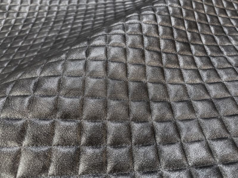 まるでキルト生地のようなぷっくりした厚みや縫い目を表現した合皮レザー生地。ラメが少し入ったようなエレガントな光沢があります。