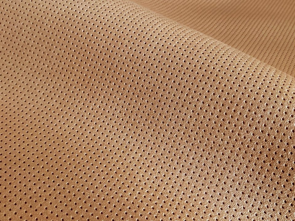 【140cm×5M単位】最上級 スエード調生地 人工皮革 日本製 【パンチング キャメル(裏張りあり)穴間隔5mm】[まとめ買い割引](アウトレット)