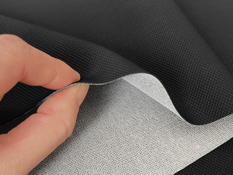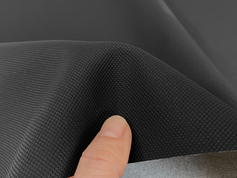 細かい均一で細かい凹凸(エンボス)加工が施された滑りにくく丈夫な生地です。伸縮性があるので施工がしやすく、お車の内装にお使いいただける難燃性です。