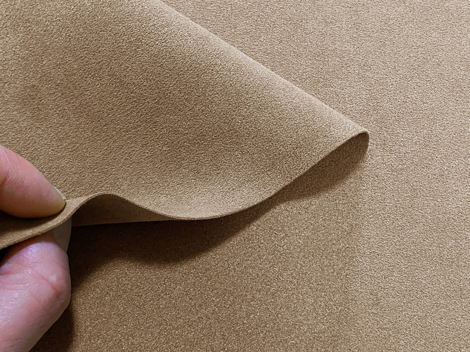 なめらかでぬくもりのある独特のスエードタッチ。しわになりにくく、通気性にも優れたハイテク性能。一層構造で切り口がほつれません。東レのマイクロファイバー技術によるスエード調の最高級人工皮革素材です。伸縮性はあまりありません。