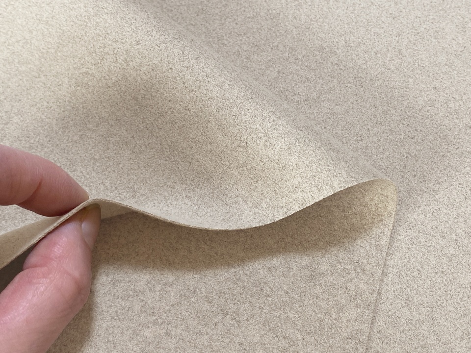 【142cm×4〜6M単位】最高級 スエード調生地 人工皮革 無地 日本製 【サンドベージュ 伸縮性 やや薄手】(アウトレット)